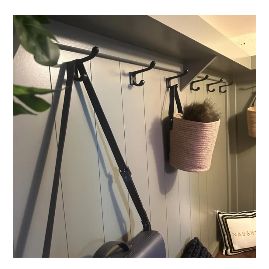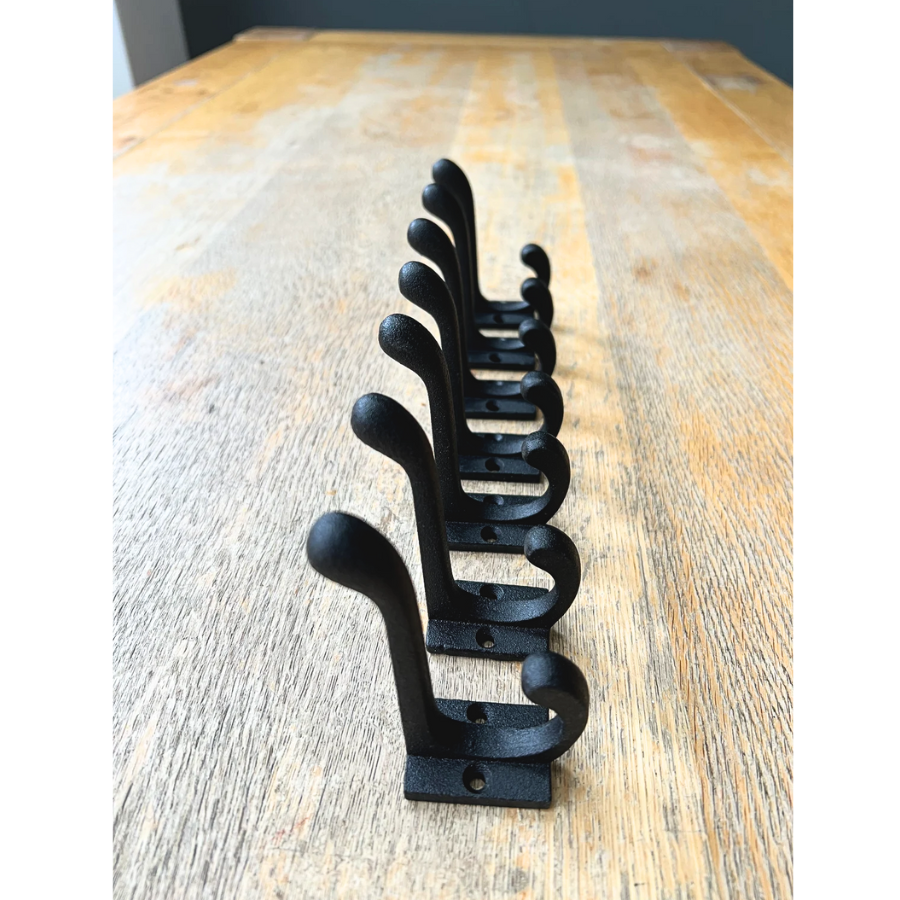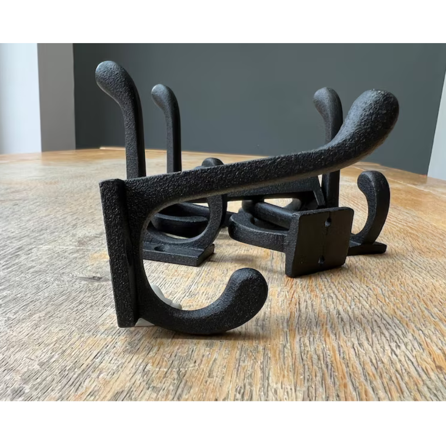 Diese handgefertigten Kleiderhaken aus Eisen mit mattschwarzer Pulverbeschichtung bieten eine langlebige und stilvolle Lösung zum Aufhängen von Mänteln, Taschen und vielem mehr. Sie werden im Dreierpack inklusive Schrauben geliefert und eignen sich perfekt für die Gestaltung einer individuellen Garderobe oder zur individuellen Montage an Wänden oder Schlafzimmertüren. Sie vereinen Funktionalität mit einer eleganten, industriellen Ästhetik.